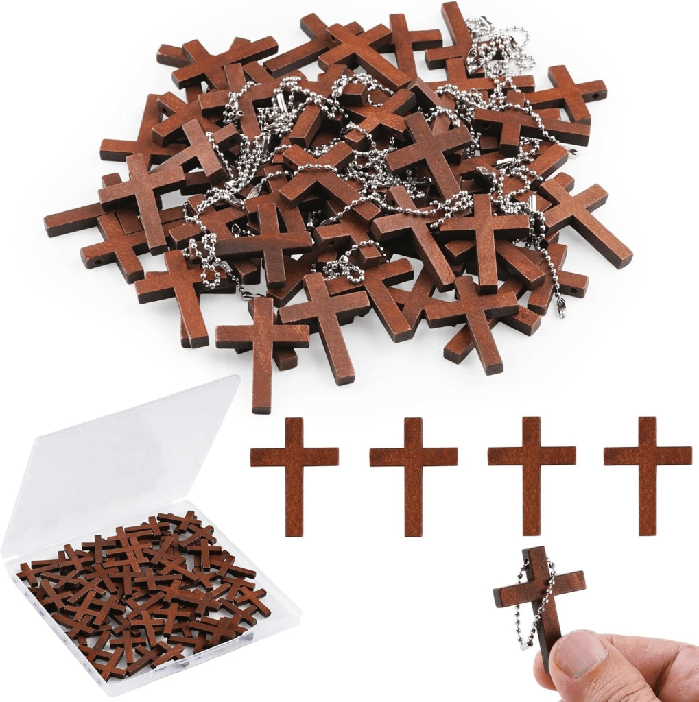 PLEASE NOTE that for a possibly brief period of time, I can also with free shipping send you 70 Wooden Cross Key chains for $10.00. Please check them out at our eBay store.